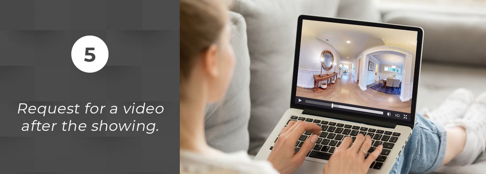 Ask your agent to send you the recorded video footage after the virtual showing so you can refer back to it when you're making a decision. You can also refer to it in case you missed out some details of the home during the live tour, or if you want to check out the features that are most important to you. Having your agent record the whole tour will also prove useful in case you experience network or connection issues during the showing.